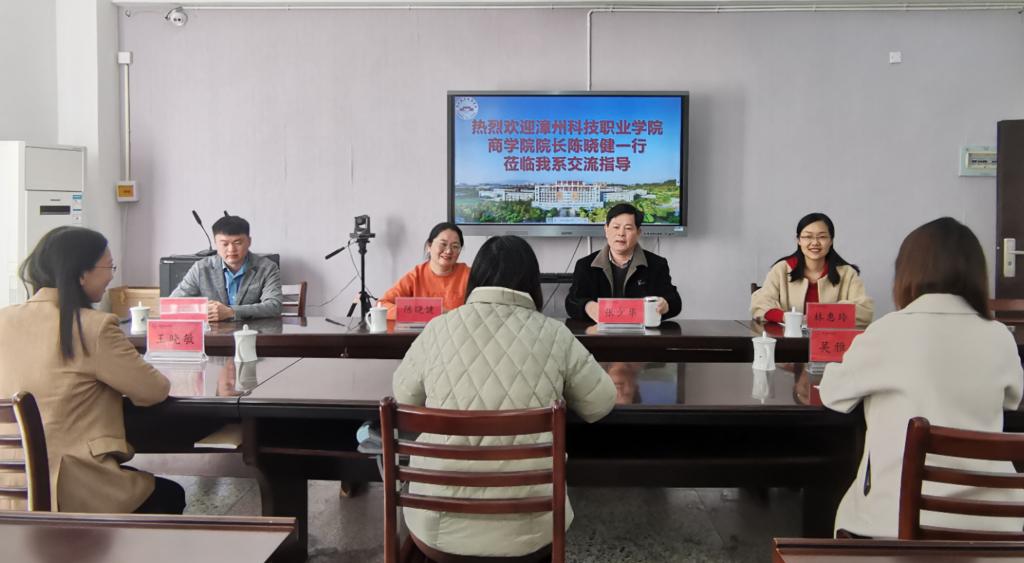 2月27日下午,漳州科技职业公司tyc33455cc太阳集团经理陈晓健一行莅临我系,双方就省级“基于产业公司的跨境电子商务专业教学资源库”建设项目展开积极交流研讨。