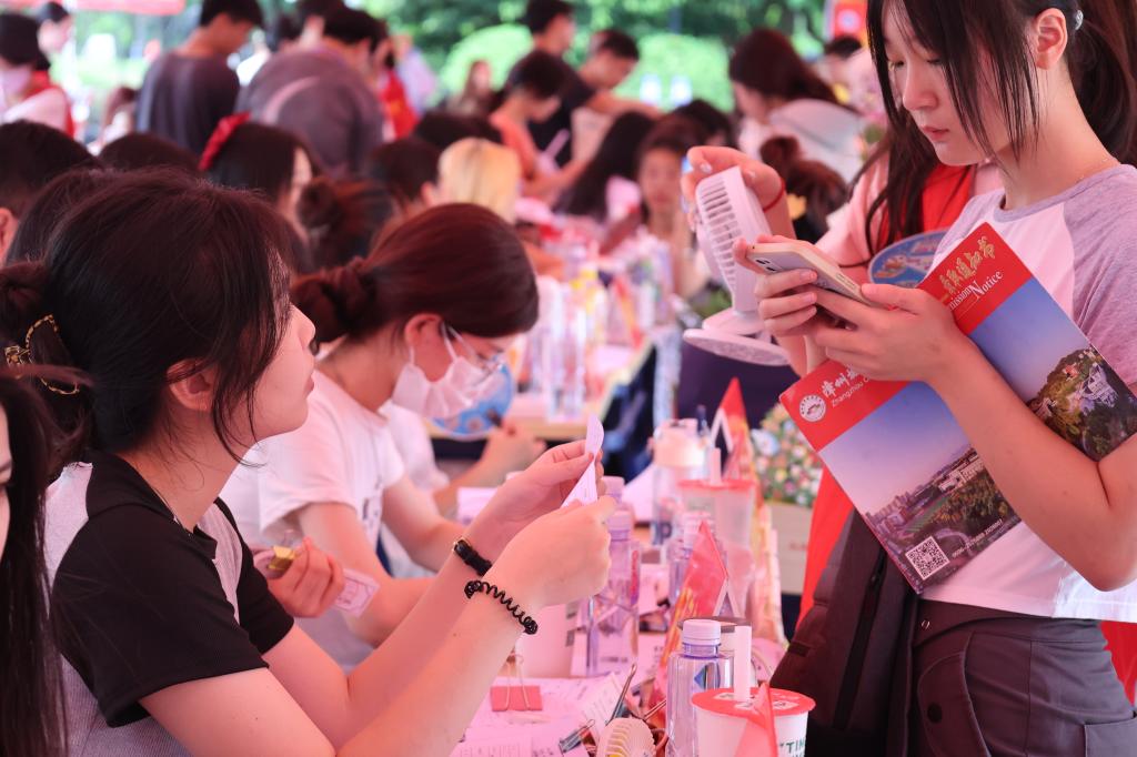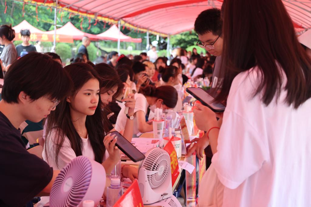 报到现场,迎新工作人员用最温暖的笑容迎接新生与家长,热情接待,耐心地办理报到手续,红帐篷下“热火朝天”。迎新现场秩序井然、温情满满,各项迎新工作有条不紊地进行。