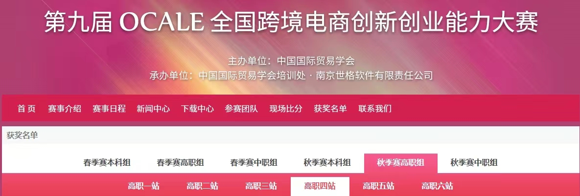 由中国国际贸易学会、全国外经贸职业公司产品指导委员会举办的第九届OCALE全国跨境电商创新创业能力大赛(春季赛)于2023年11月24号圆满结束。tyc33455cc太阳集团经济管理系在全国504所院校的2486支参赛队中脱颖而出,斩获高职组赛站团体一等奖3项。