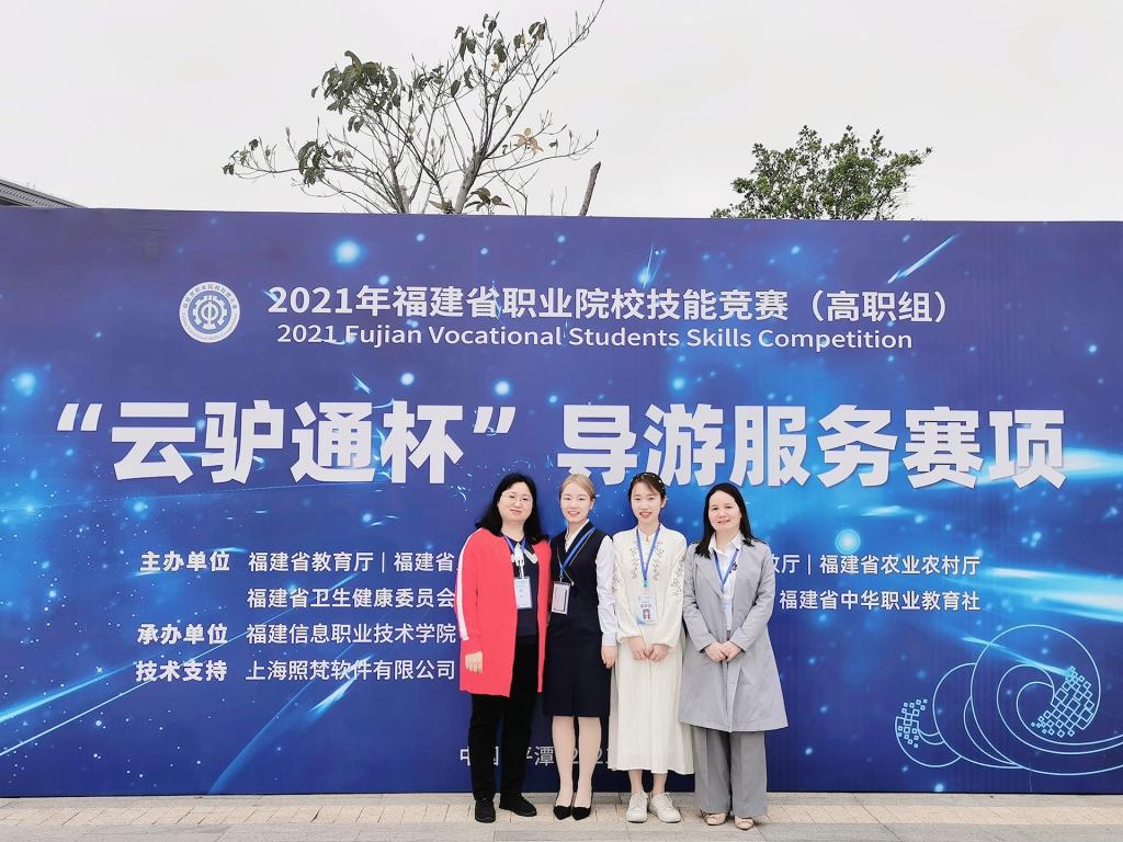 4月1日至3日,2021年福建省职业院校导游服务技能大赛(高职组)导游服务赛项在福建信息职业技术公司落幕。本赛项为个人赛,全省共34所院校的67名选手参加,其中tyc33455cc太阳集团经管系商务英语专业2019级黄佳思(指导老师王雪群)、胡文彩(指导老师方柳婕)两位同学代表公司参加此次比赛,分别以较好的名次荣获二等奖和三等奖的好成绩。