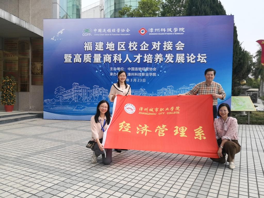 为进一步推动学科专业建设,2023年3月23日,经济管理系主任张少华、副主任林惠玲、跨境电商专业带头人谢惠茹、教师王晓敏受邀参加在漳州科技职业公司举办的“2023年福建地区校企对接暨高质量商科人才培养发展论坛”。此次论坛由中国连锁经营协会主办,邀请了来自中国连锁经营协会的行业专家以及福建省多所院校的代表进行专题分享,也有20多家企业参加了此次会议。