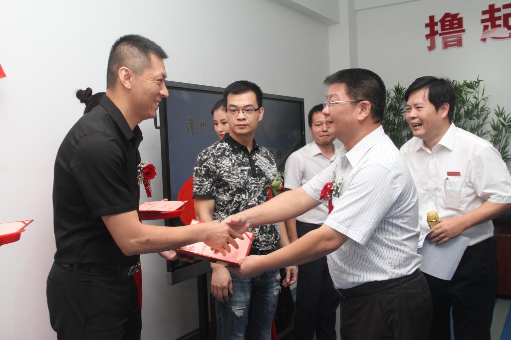 仪式中,公司洪亚勇书记,刘惠河经理,漳州市经信委党组成员苏斌钢和电商协会黄志刚会长首先为八家校企合作单位揭牌。紧接着,在欢快的音乐中,刘惠河经理为行业企业专家代表颁发聘书。伴随着与会领导嘉宾的掌声,朱毅辉副经理,市商务局林建成副局长,芗城区商务局甘锦丽局长,漳州市互联网协会黄相如会长,方正证券(福建区)曾剑光总经理和泉州海思维科技有限公司兰茂泉董事长共同启动“水仙网”。