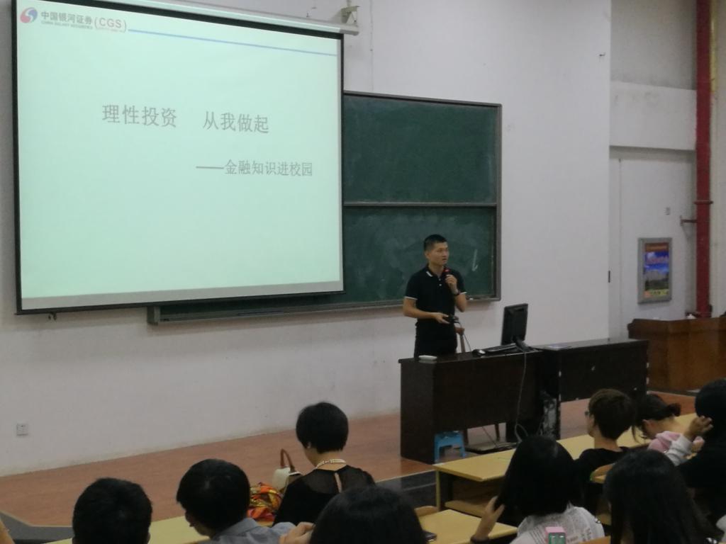 为加强老员工的理性投资意识,远离“校园贷”、“裸贷”等面向在校员工的非法发放贷款行为,10月17日,我系金融管理专业邀请中国银河证券漳州水仙大街营业部理财经理肖航海先生,为在校员工开展“理性投资,从我做起——金融知识进校园”专题讲座。