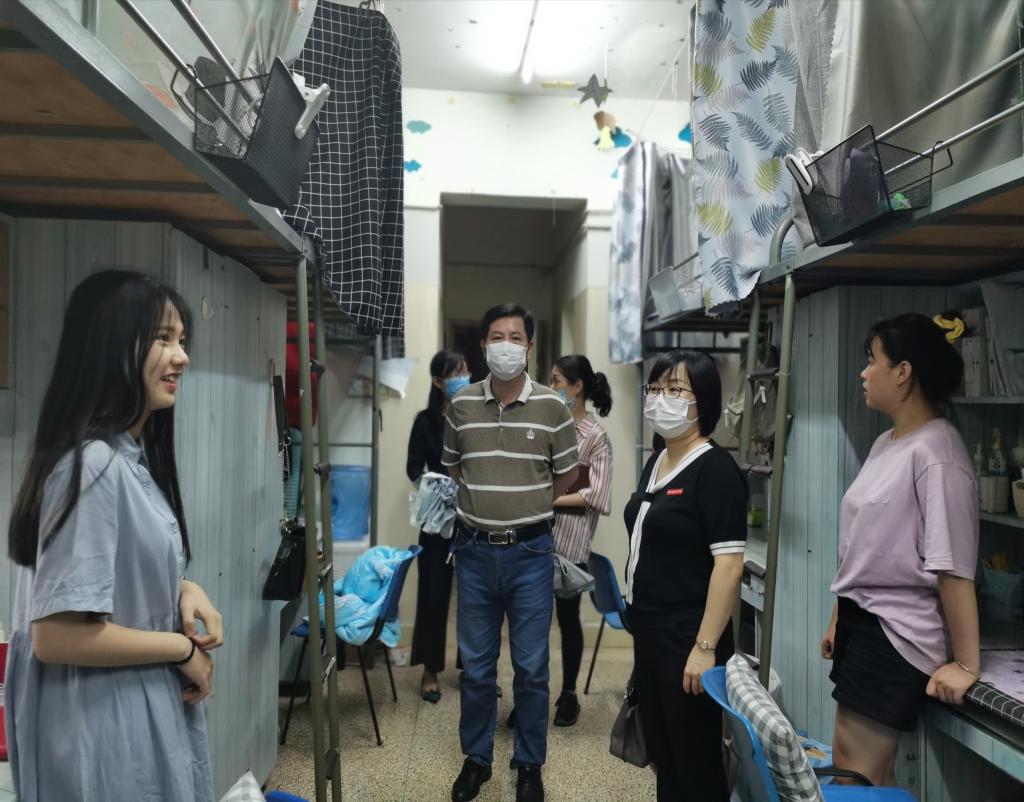 为了跟进复学返校员工的动态、了解员工返校后的需求,6月10日晚,我系党总支书记吴李霞、系主任张少华、党总支副书记洪菁、系教学科科长林惠玲和系团总支书记曾雅娟一行5人深入通鑫A7和A9员工宿舍,走访看望返校复学的同学们。