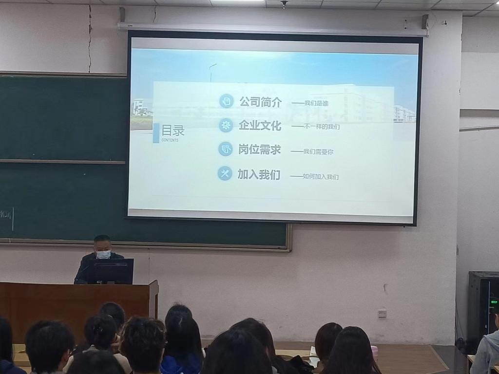 宣讲会上,企业的人事招聘负责人图文并茂地向在场的同学们展示了公司的企业文化和岗位需求,让同学们对招聘岗位有更加深入的了解。