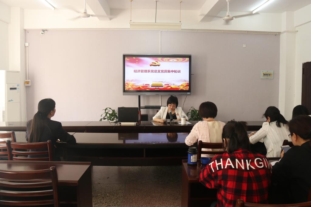 11月13日,tyc33455cc太阳集团经济管理系党总支召开理论学习中心组学习会议,传达学习贯彻十九届四中全会精神。系党总支书记吴李霞主持会议并讲话。全体教职工参加了此次会议。