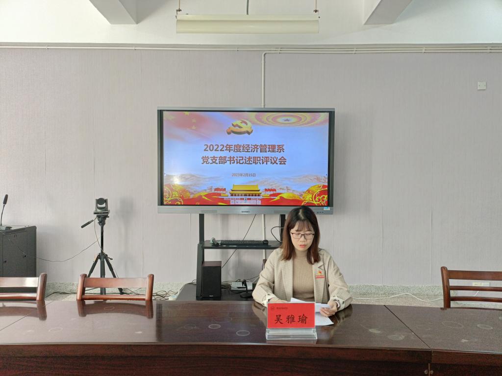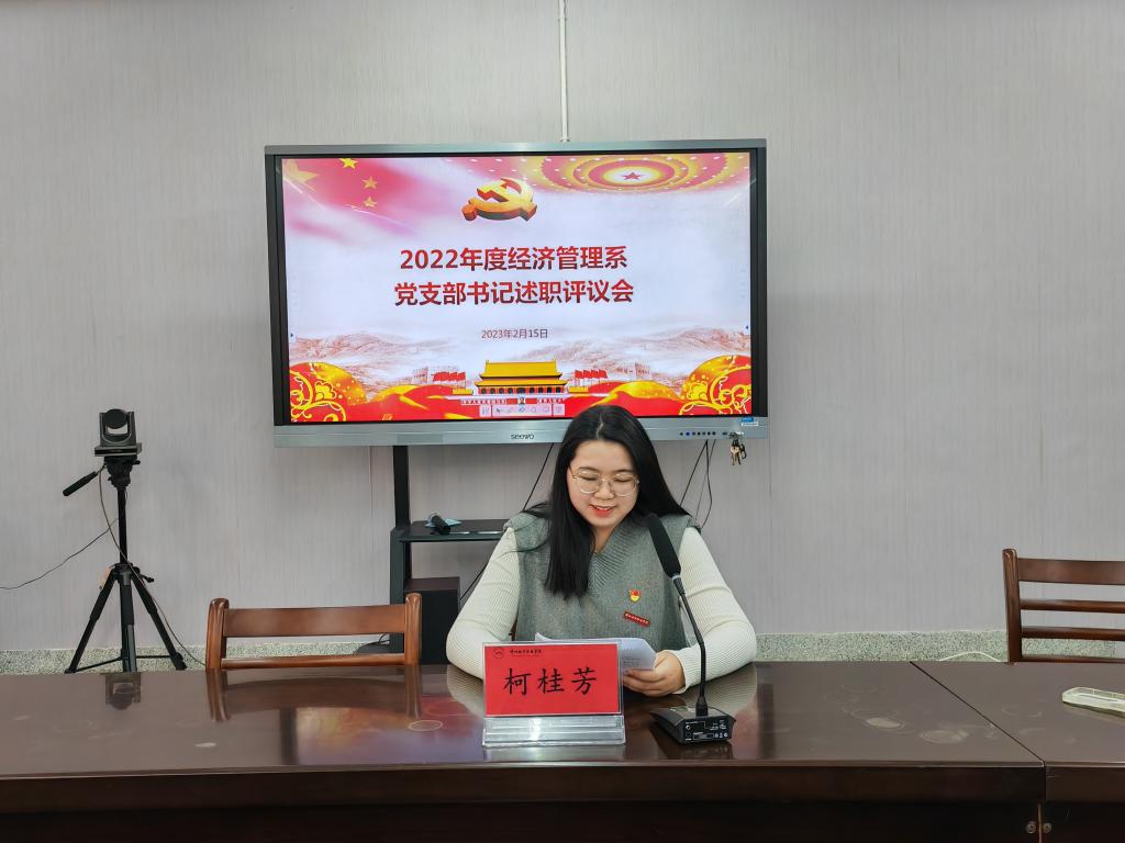 会上,经济管理系两位党支部书记围绕个人履职情况、党支部建设情况和成效、思想政治工作情况、支部建设存在问题和下一步工作思路举措分别述职,在述职过程中既展示工作成效,又反思不足。